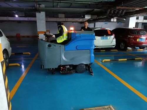 臨沂欣欣物業(yè)地下車庫使用鼎潔盛世洗地機(jī)清潔地面