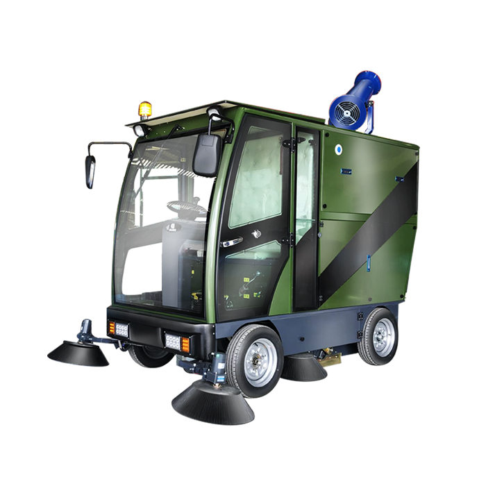 DJ2300-GYWP電動(dòng)掃地機(jī)為掃吸一體化設(shè)計(jì),前置四只邊刷負(fù)責(zé)收攏清掃幅面垃圾,中置主刷負(fù)責(zé)清掃拋甩垃圾,內(nèi)置兩組大功率真空負(fù)壓吸塵系統(tǒng),配備四個(gè)500W 高速吸塵風(fēng)機(jī),通過四只大面積濾芯進(jìn)行自動(dòng)濾層,且可一鍵自動(dòng)清理濾芯,配合高壓霧化噴淋系統(tǒng),可有效抑制揚(yáng)塵和對地面垃圾及灰塵徹底清掃。