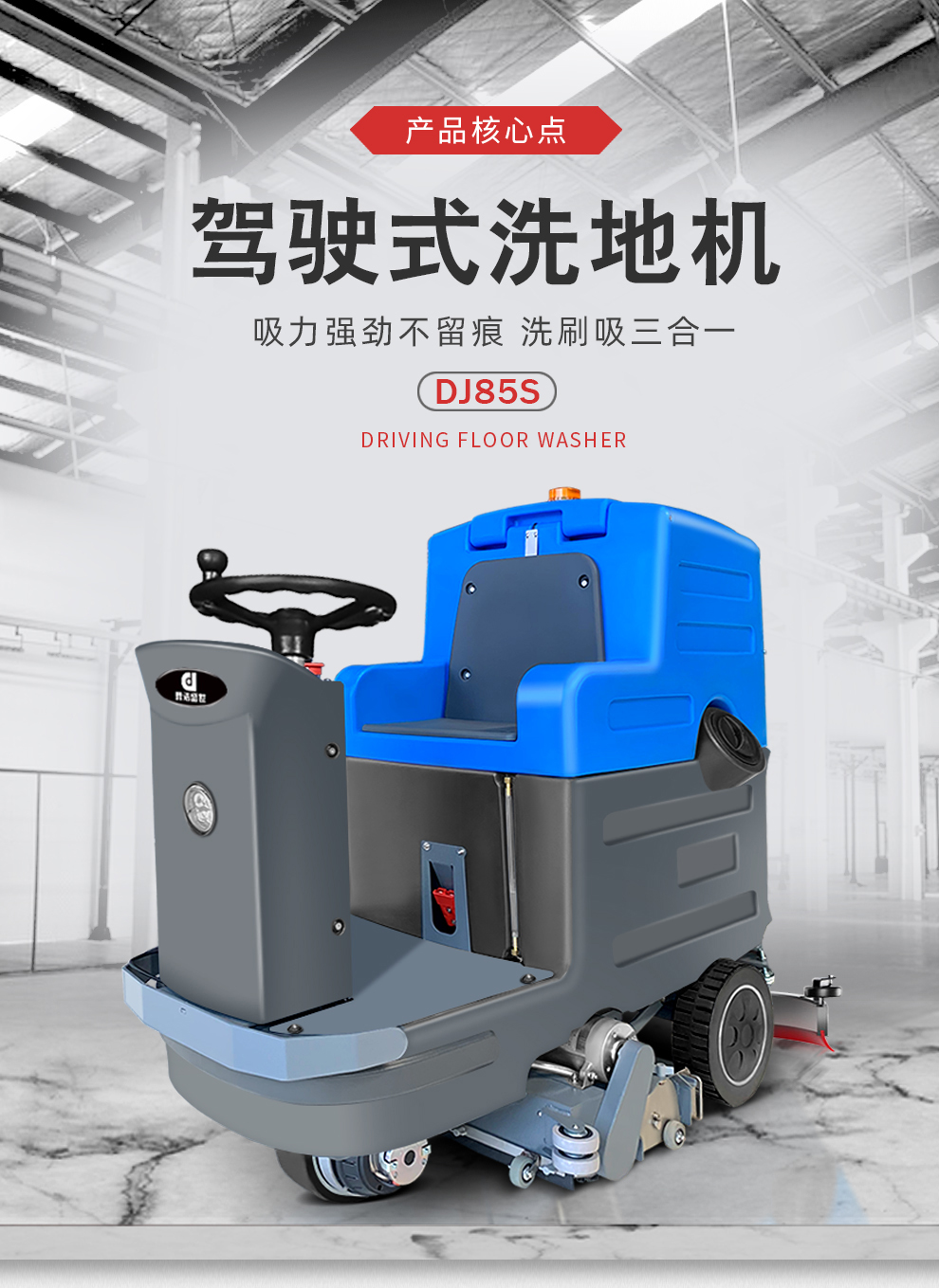 適用場所:大型倉庫、賣場、車間、展館、場館、廣場、候車廳等場地保潔。 洗掃一體機(jī)洗地,拖地,擦地的同時還可以把地面垃圾統(tǒng)統(tǒng)掃起來