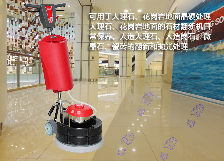 適用場所:針對賓館、酒店、大廈商場、機場超市等高檔場所的天然石材(大理石、花崗巖)打磨翻新晶面處理,是再造石材靚麗光亮的工具