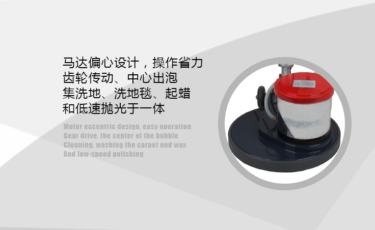 適用場所:特點(diǎn):偏心設(shè)計、齒輪傳動、中心出泡,操作靈活簡便具有洗地、洗地毯、起蠟和低速拋光等功能此機(jī)可配置PX50電子發(fā)泡箱使用,地毯清潔更方便