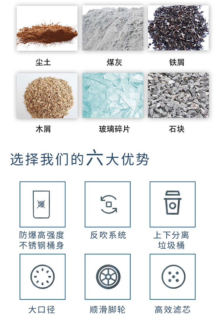 適用場所:DJ5510FB防爆工業(yè)吸塵器大功率防爆吸力強,大容量上下分離快裝桶。