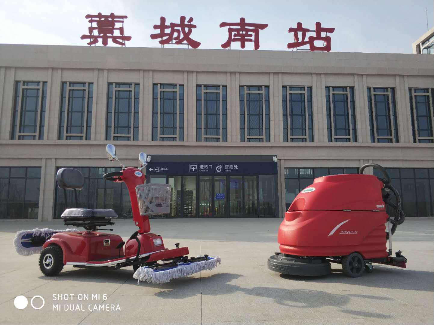 火車站保潔用塵推車和洗地機(jī)