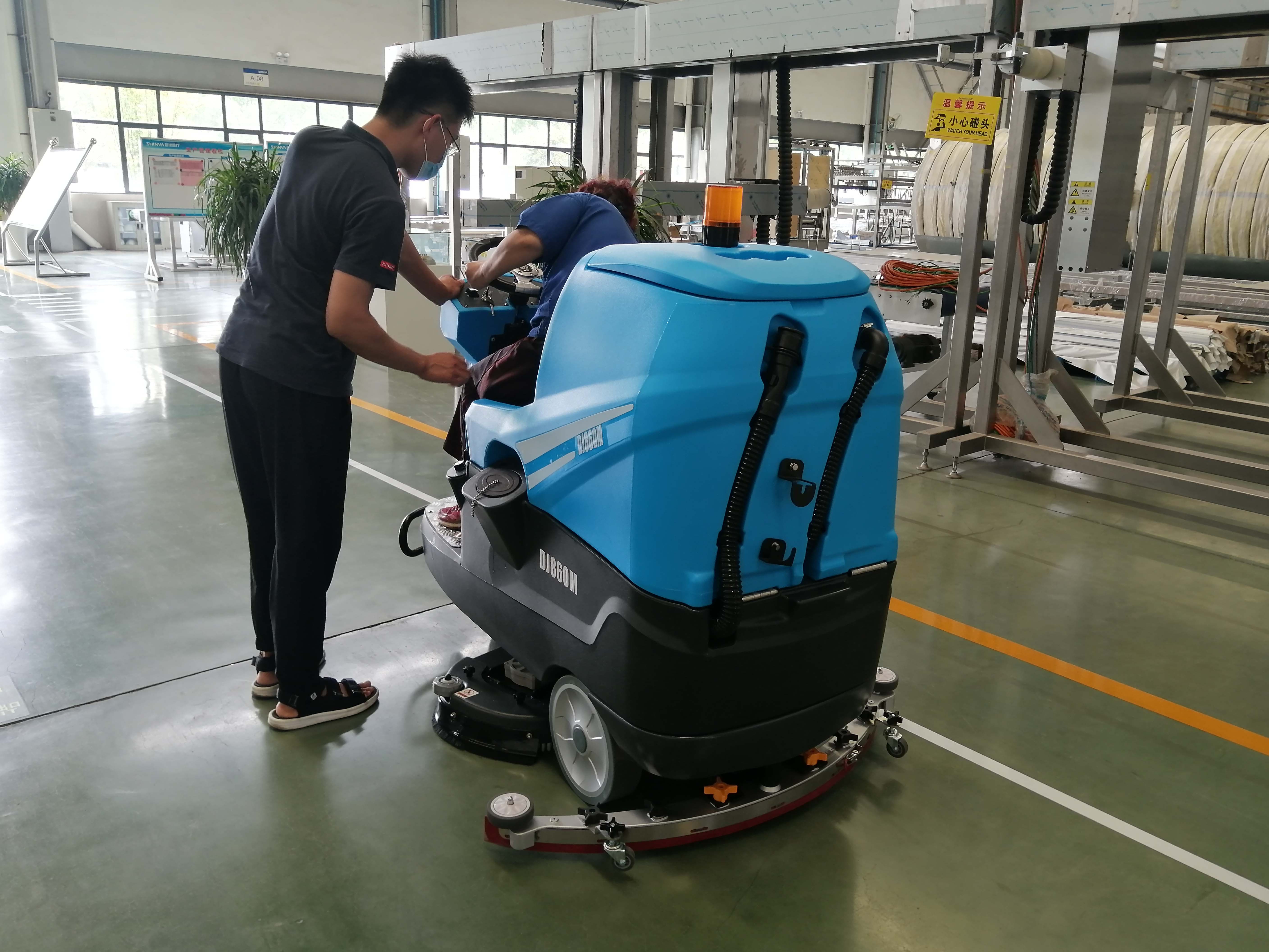 淄博鼎潔清潔設(shè)備有限公司的駕駛式洗地機DJ860M進入新華醫(yī)療車間為忙碌的車間奉獻一份力量,室內(nèi)可以使用洗地機打造無塵車間的地面效果,清洗地面后無灰塵、無殘留水漬,省去了多工工人拿著拖把來回清洗的步驟。