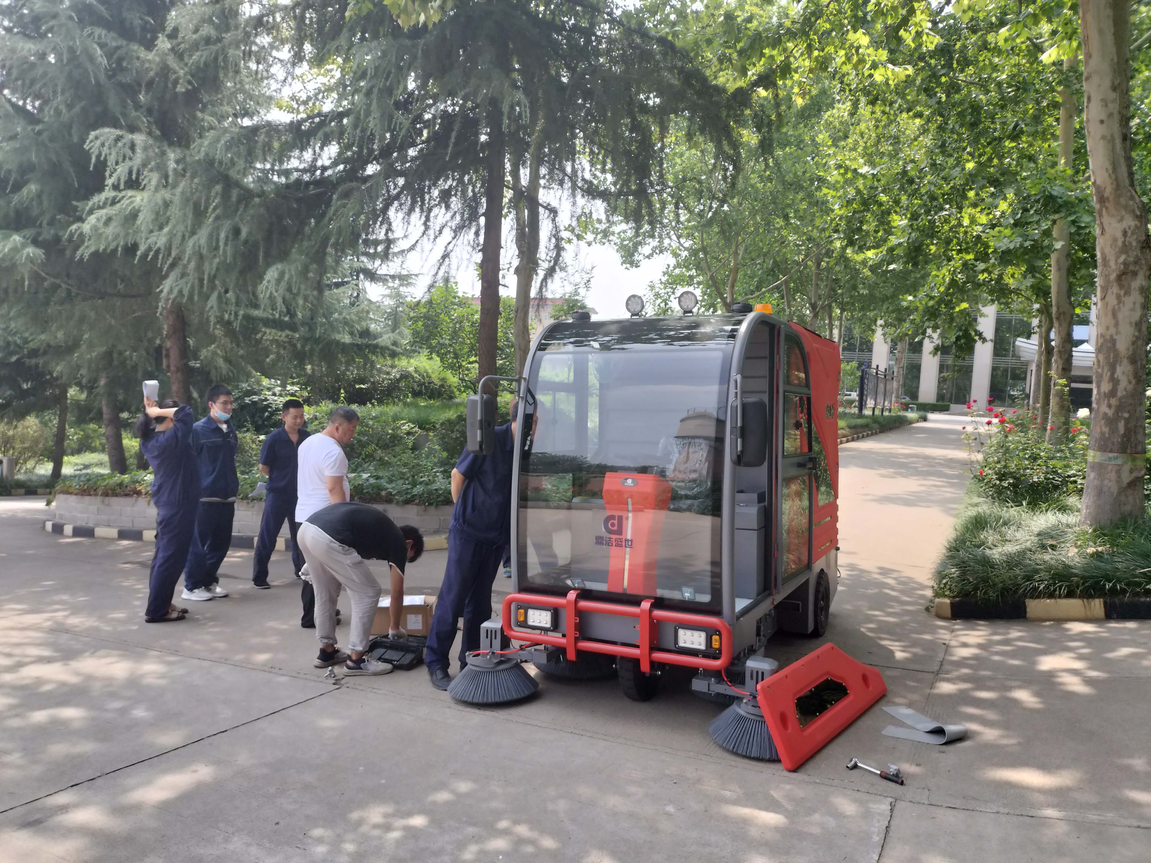 鼎潔盛世電動掛桶掃地車清掃寬度2.2米。是一款操作舒適簡單、轉彎半徑靈活的駕駛設備。可用于多種使用場合,如:市政環(huán)衛(wèi)、工廠車間、小區(qū)道路、學校機關……等眾多環(huán)境,雙風機雙濾芯,加高底盤,駕駛舒適性更高。設備到達現(xiàn)場后,鼎潔盛世總部派專業(yè)培訓工程師上門培訓。領導在設備驗收現(xiàn)場對鼎潔盛世設備以及負責任的售后服務予以肯定。