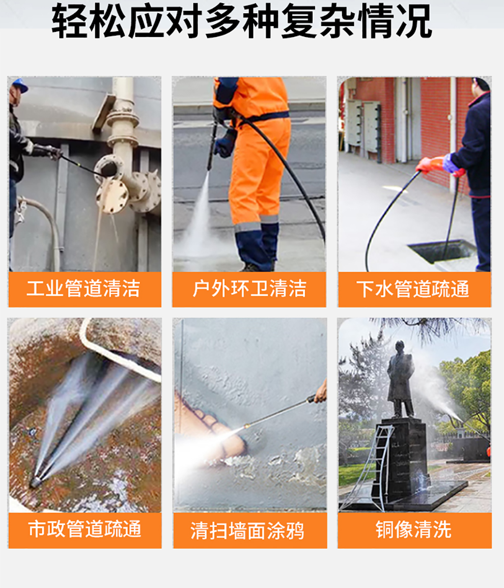 適用場所:適用場所:市政下水管道的疏通,清除管道中的堵淤和污物。