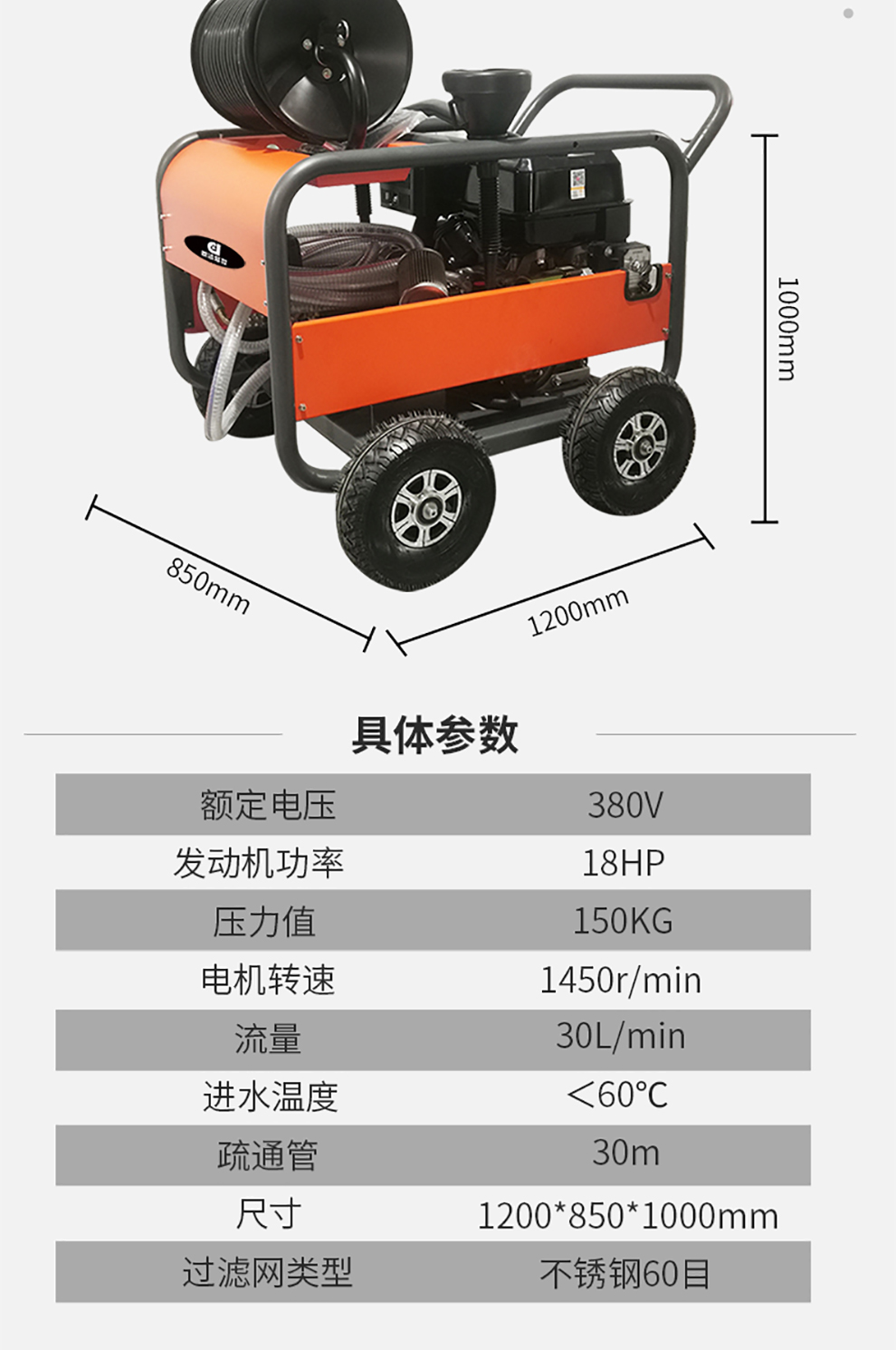 鼎潔盛世汽油高壓管道疏通機DJ150-30GQ