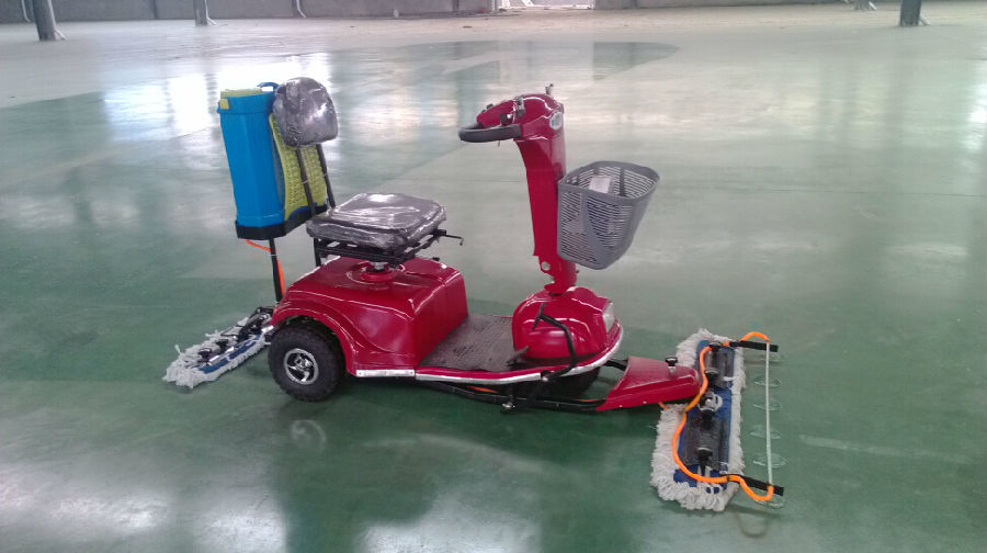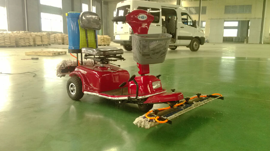 我公司自行研制的塵推車550S正式投入使用,該塵推車具備灑水的功能,在工作中大大提高了清潔標準。