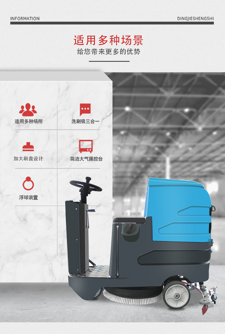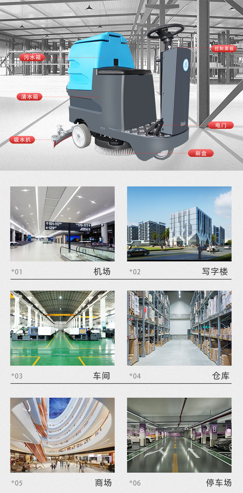 適用場所:商場超市、工廠車間、學(xué)校醫(yī)院、火車汽車站、物業(yè)地下車庫等,解決水泥地、瓷磚、環(huán)氧地坪、金剛砂等地面清洗。