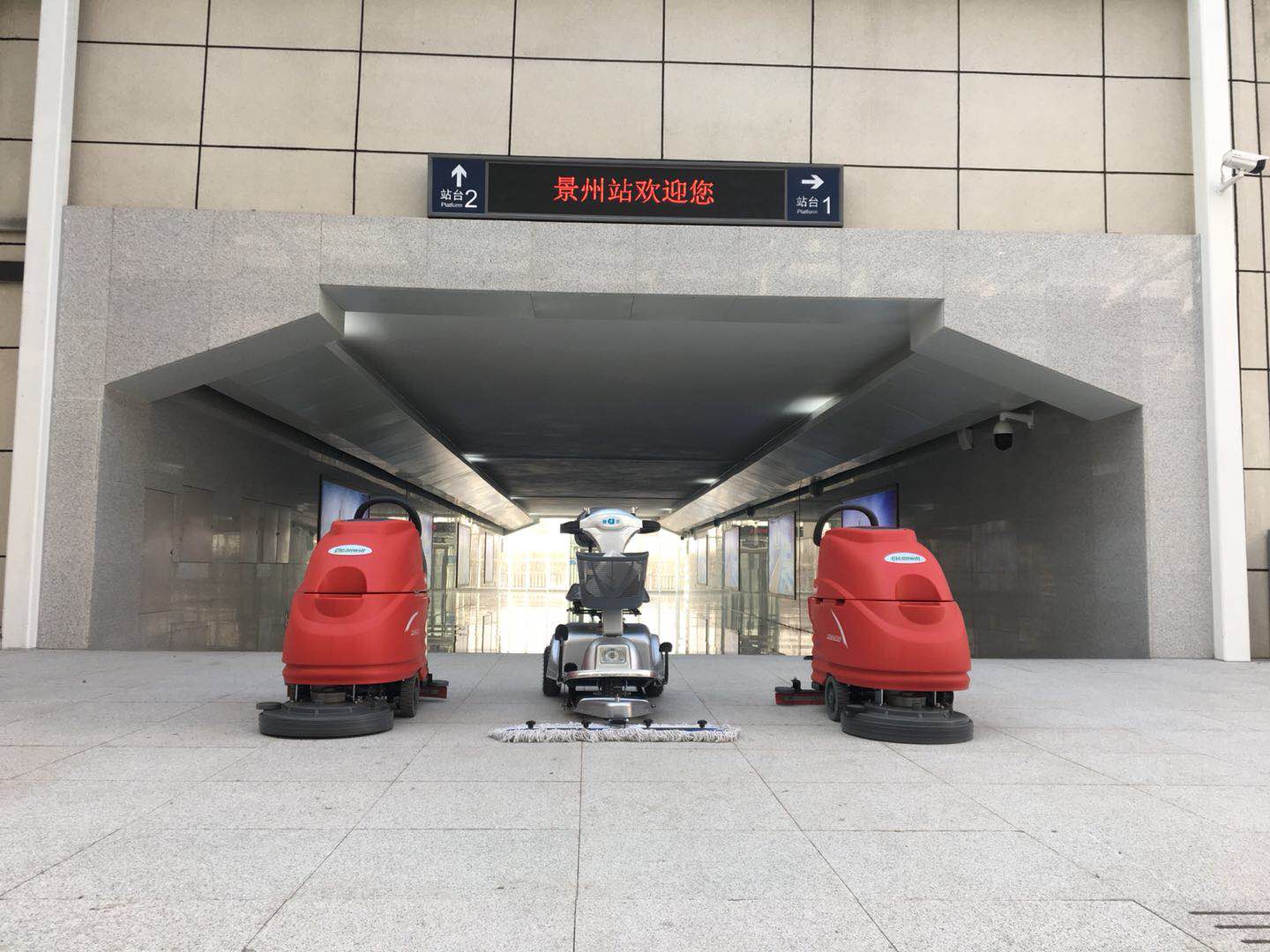 火車站保潔用塵推車和洗地機(jī)