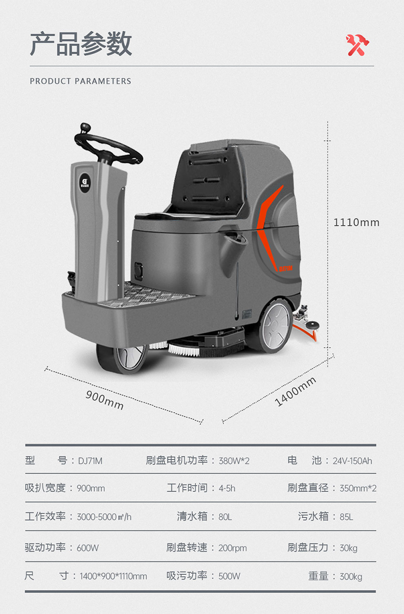 鼎潔盛世駕駛洗地機(jī)雙刷電動洗地車DJ71M
